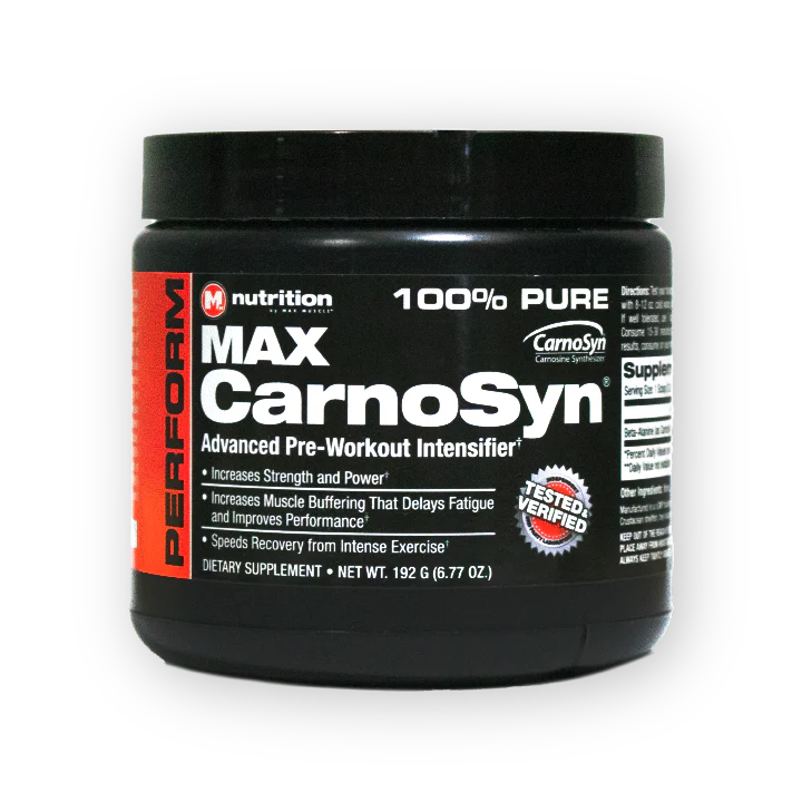 Max CarnoSyn® is the only patented and scientifically proven form of beta-alanine for human performance. Max CarnoSyn® is Beta-Alanine (as CarnoSyn®), licensed under Natural Alternatives International, Inc. global estate. It has 21 global patents and supported by over 44 scientific studies of which 41 have been published proving it increases muscle hypertrophy, strength, power output, proton buffering and as an anti-catabolic agent.