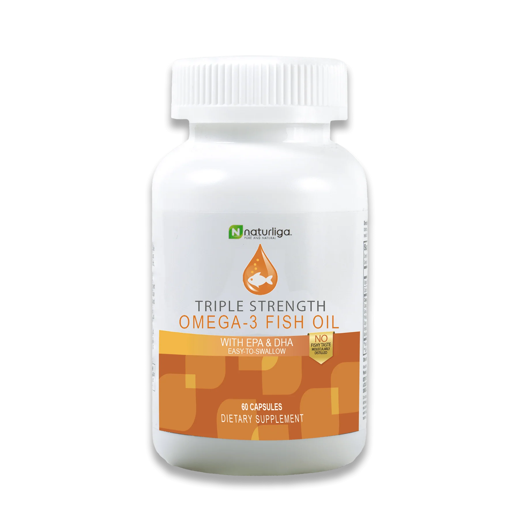 Naturliga™ Triple Strength Omega-3 Fish Oil is our molecularly distilled/ultra-pure, highly concentrated blend of omega-3 fatty acids uniquely delivered with absolutely no fishy aftertaste. Our omega-3 fatty acids exist in their most active and natural form.